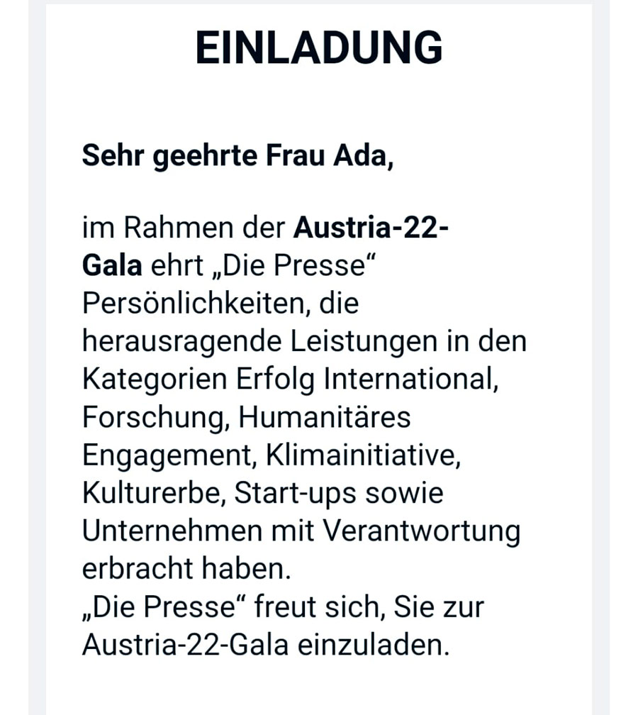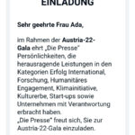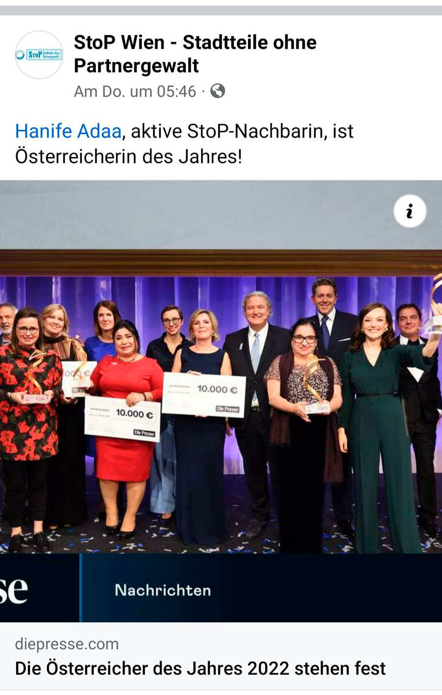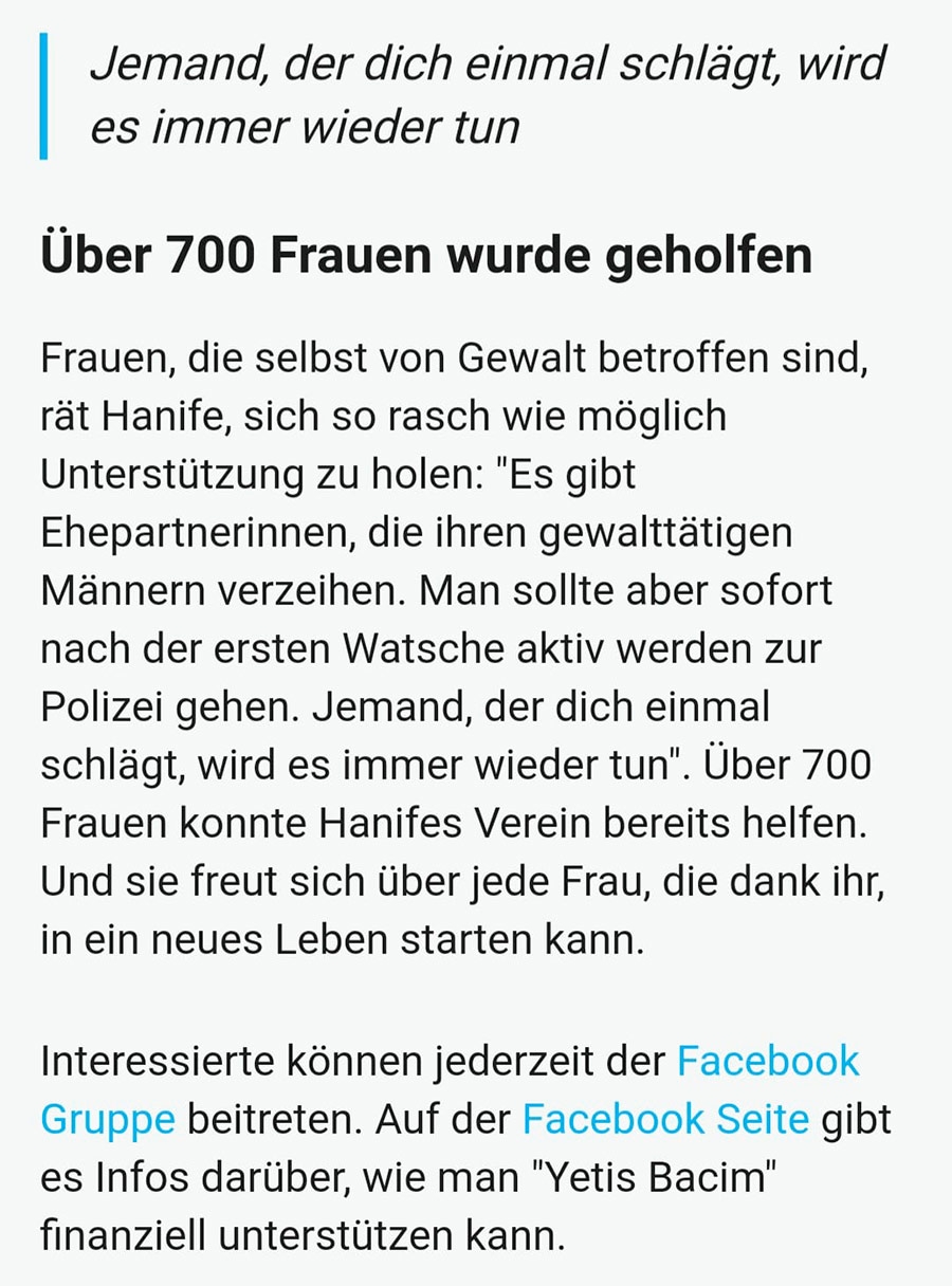 Hanife Ada wurde Österreicherin des Jahres 2022 Mit dieser hohen Anerkennung können wir noch besser helfen.Vielen Dank! Einige Impressionen: Video WIEN – Postfach yetisbac@gmail.com +43 (0) 699 177 81 768
